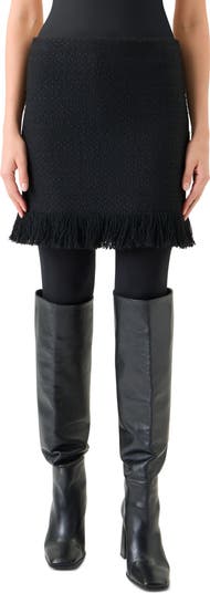 Feathery fringe lends a playful flourish to this bouclé-tweed skirt that offers a relaxed take on traditional suiting.