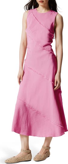 Flickers of fringe diagonally stripe a linen-kissed dress that's ready to be a summery staple.