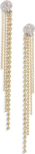 14-karat-gold mixed-link chains add playful movement to these drama-packed earrings featuring a white-gold stud sparkling with diamond pavé.