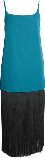 This Roaring '20s–referencing slipdress featured on the spring '26 runway is crafted in Italy from cotton poplin and finished with long, contrast-color fringe, taking the hemline from mini to midi