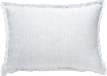 The Sky Blue Fringe Soft Linen Pillow is Soo soft- you won't believe it's linen! This yarn has a slight nub which gives it a beautiful natural texture. Edges have a self-fringe on all sides. Details. Front & Back Color: Sky Blue Front & Back side: 100% Linen (Pre-washed) Concealed zipper closure on back side. Hand washing or a delicate cycle with like colored fabrics recommended. Hang to Dry. Made in India.