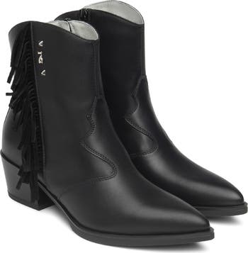 Fringe trim heightens the Western attitude of this casual-staple bootie lifted by a block heel.