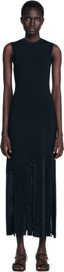 SANDRO Fringed maxi dress, Alternate, color, Black