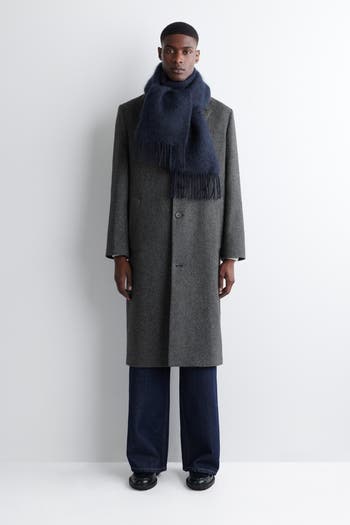 Designed for the coolest days of the year, this scarf is knitted from a mohair and wool blend that has a softly brushed texture. It's finished with fringed ends and has a COS logo patch on one side.