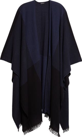 Neutral patchwork coloring adds versatile styling options to this softly fringed cape that's an easy, elegant add-on made from a supersoft blend of wool and cashmere.