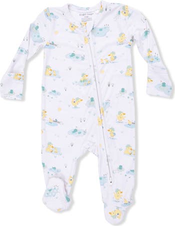 A cute duck and frog print sweeten up this soft and stretchy footie designed with a two-way zip closure to help make diaper checks a bit easier. Foldover cuffs ensure little hands are protected from accidental scratches.