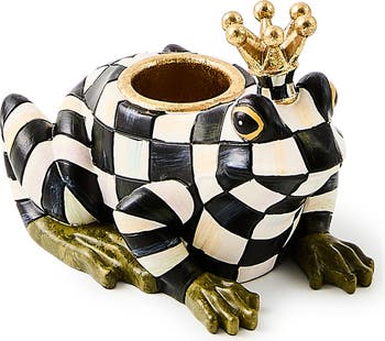 Elevate your illumination situation with the whimsical design of this candleholder that's hand-painted with color-dragged checks highlighted with gilt details that amplify your candle's flame.