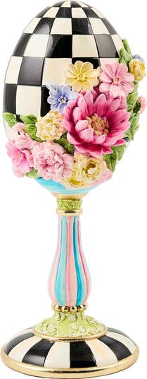 Hatch some charming seasonal style with this decorative egg that's hand-painted with the brand's signature color-dragged checks and accented with dimensional blooms.