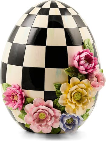 Hatch some charming seasonal style with this decorative egg that's hand-painted with the brand's signature color-dragged checks and decorated with dimensional flowers.