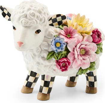 This adorable figurine is decorated with a Courtly Check pattern and dimensional florals, making it a charming addition to your doorway, table or counterop.