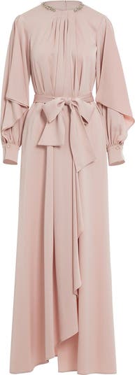 Front Pleated Detail Slit Sleeve Powder Long Dress