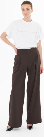 These long, straight-cut trousers are designed for the Fall-Winter season with a wide-leg silhouette and an elasticized waist that ensures ease and comfort. Measuring approximately 44 inches in length, they feature functional pockets and a lined interior for added refinement. Made from 93% polyester and 7% lycra, the fabric provides flexibility and a soft drape. The model wears size 36 and is 5'9" tall, with measurements of 33" bust, 24.4" waist, and 36.2" hips.