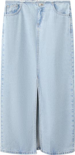 Front Slit Denim Midi Skirt