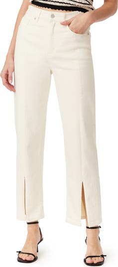 Soft stretch denim gives comfort and easy movement to these high-waist jeans updated with airy vented hems.