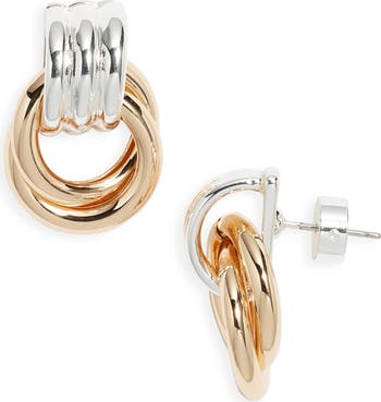 Elevate your look with the modern elegance of these two-tone earrings that are destined to make a statement.