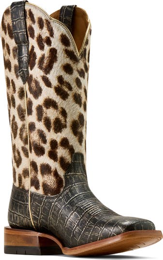 A mix of leopard-print calf hair and croc-embossed leather bring head-turning, rodeo-ready vibes to this statement Western boot, while the cushioned insole and ergonomic support ground the style in all-day comfort.