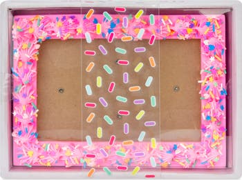 Show off one of their favorite memories in this pinktastic photo frame brightened with an assortment of confetti.