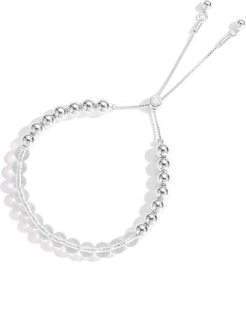 Classicharms FrostLily Clear Crystal and Bead Bolo Bracelet, Main, color, Silver