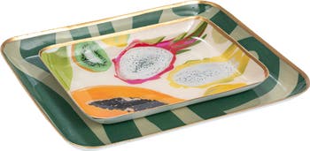 Fruit and Abstract Enameled Metal Trays, Set of 2