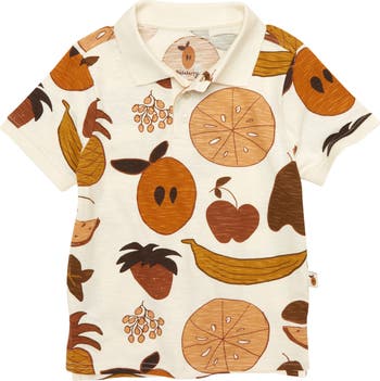 Softly slubbed organic cotton brings delicious comfort to a polo covered in hand-drawn fruit that will add a healthy dose of fun to your little one's day.
