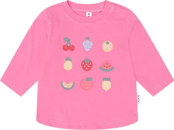 The perfect everyday top, but with a sweet fruity twist. This long sleeve t-shirt is made from buttery-soft organic cotton and features a fruit salad embroidery on the tummy.