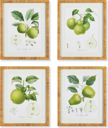 - This set of four coordinating fruit studies offers a detailed look at the splendid beauty of nature. Each piece a study of a different fruit from apples to pears, all in soothing green tones. From the closer look of a cross-section to the subst