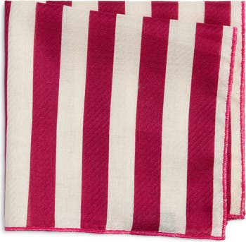 Bright and colorful, this stripe-print pocket square brings an unexpected pop and a polished finish to any formal or semiformal outfit. It pairs well with smooth, solid fabrics, but there's always room for mixing patterns and textures to define your personal look.