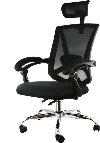 If you need a chair with ergonomics and customization in mind, look no further than the Elama Full Back Mesh Adjustable Office Chair with Headrest in Black. This chair has customizable features like adjustable headrest, lumbar support, seat height, and back tilt so you can make it perfect to your size and liking. The chair can even tilt back into a near horizontal position. With full mesh back, this chair is light and breathable so you'll barely feel it's there and the sponge padded seat will be comfortable for hours. A 5 wheeled 360 degree swivel base makes this chair easy to maneuver around your office space.
