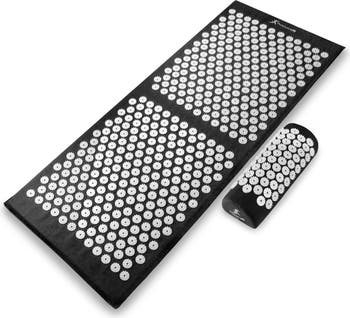 The ProsourceFit Acupressure Mat and Neck Pillow Set is an effective and affordable home remedy for muscle discomfort, stress, insomnia and more. The foam bed and thickness of the neck pillow have plastic needles covering thousands of acupressure points. Choose the regular acupressure mat with 8,910 acupressure points or the longer acupressure mat with 11,178 acupressure points. Acupressure therapy activates pressure points along your body’s meridian lines, stimulating and promoting healing. Ideal for muscle recovery during post-workout or during savasana at the end of a yoga session. Acupressure helps release tension in tight areas like the back, neck and feet.. The material is made of 100% cotton and plant-based eco foam which can be hand washed. The regular mat measures 26 1/2 by 16 1/2 inches and the longer version measures 51 by 19 inches. Both pillows are 14 3/4 by 5 3/4 inches. Both mats provide full back coverage while the longer mat provides coverage from the back to the legs which can be more suitable for someone taller and better for a full-body massage session.