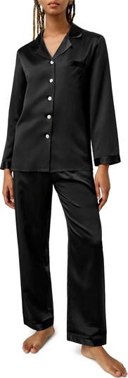 Relax and unwind after a busy day and slip into the Long Sleeve Button-Down Silk Pajama Set. The long-sleeved button-front shirt will feel like second nature against your skin. The matching pants have a relaxed and comfortable fit making them easy to slip on.
