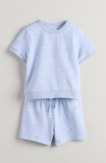 Nordstrom Fun Short Sleeve Cotton Sweatshirt & Sweat Shorts Set, Main, color, Blue Xenon Sunset