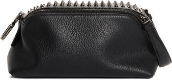 House-signature studs spike the top flap of this Italian-crafted leather pouch finished with an iconic Loubi-red interior.