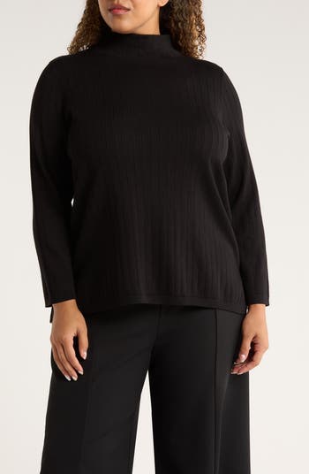 Soft, wide ribbing adds texture to this easy sweater knit with a sleek funnel neckline from lightweight yarns.