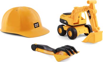 Take outdoor fun to the next level with the Cat Construction Fleet Sand Set! This set gives you all the tools you need to tackle any construction job, including a push-powered 10” vehicle along with a hard hat, shovel, and rake. Safety comes first on the job site so proudly wear your Cat hard hat when you’re controlling the action by moving and posing the articulated vehicle buckets and booms just like the real thing. Use the hand tools separately or snap them together to help excavate the job site. Real Cat machines are known for their high quality, these toys are no different, built to withstand the elements and perfect for outdoor play. Appropriate for ages 2 years and up. Collect them all!