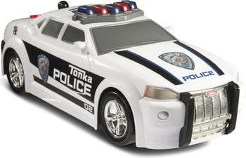 With the Tonka Mighty Motorized Police Cruiser, you can really cruise! Chase down the bad guys in this vehicle equipped with 3 new sounds and flashing lights. Work the lever on the back to send this motorized vehicle racing forward! Realistic styling and attention to detail bring the action to life. 3 AAA batteries are required, included. Appropriate for ages 3 years and up. WARNING: CHOKING HAZARD -- Small parts. Not for children under 3 yrs.