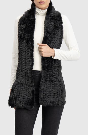 Lyla Grant Fur-Free Rex Rabbit (Faux Fur) Knit Scarf, Alternate, color, Black