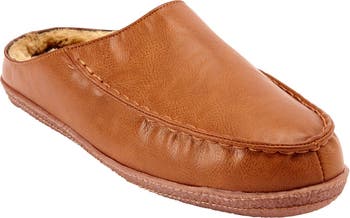 Comfortable and classic. These fur-lined clog slippers combine a smooth faux leather upper and warm synthetic fur lining to deliver the sophistication you want and the comfort you need.