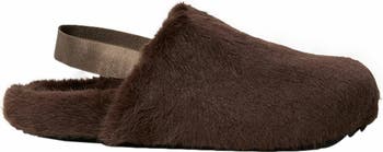 - Made from cozy faux fur, this slipper is grounded on a molded footbed and finished with a slingback strap. Made from cozy faux fur Molded footbed Slingback strap 100% Textile