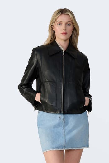 Hand-crafted from premium British leather, this cropped jacket features a structured silhouette, lightweight feel, and timeless details for lasting versatility. Designed with clean lines, a classic collar, and an exposed front zip closure, this leather jacket offers a polished look that transitions effortlessly from day to night. Subtle seaming and a streamlined fit provide a modern edge, while the lightweight construction makes it ideal for layering in changing weather. Durable and luxurious, this piece is crafted to endure season after season. Made in Turkey, imported, and shipped from the USA. Ideal for those seeking a genuine leather jacket with a minimalist design, perfect for pairing with jeans, trousers, or dresses.