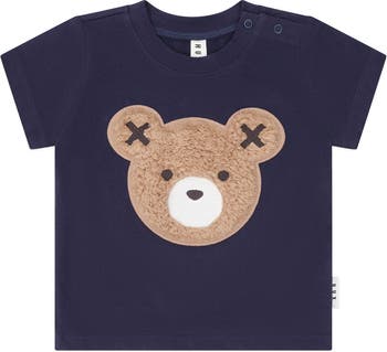 Made from cloud-like organic cotton, this classic white tee features a tummy-sized Huxbear embroidery in the softest furry fabric.