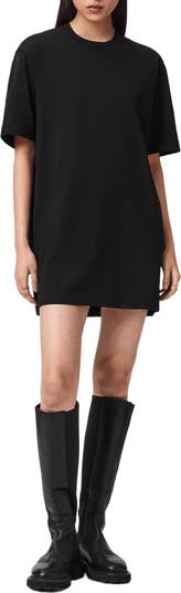 Animal-spot-appliquéd logo letters span arm-to-arm across the back of this oversized cotton T-shirt dress in a mini length.