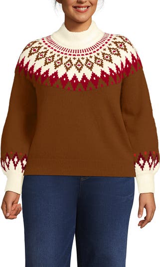 Fuzzy Turtleneck Lantern Sleeve Jacquard Sweater