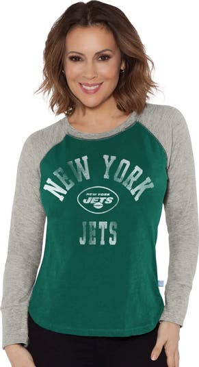 Add comfy New York Jets style to your wardrobe with this Waffle Knit Raglan Long Sleeve T-Shirt from G-III 4Her by Carl Banks. It features waffle-knit raglan sleeves, offering enhanced breathability and a greater range of motion for all-day wear. The distressed screen print team name and logo on the front add vintage charm to this casual New York Jets tee.