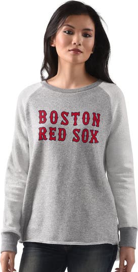 Get cozy in Boston Red Sox style with this G-III 4Her by Carl Banks Gridiron Raglan Pullover Sweatshirt. This sweatshirt features raglan sleeves for increased range of motion in the shoulders and an unfinished droptail hem with side splits for a casual look. Plus, the screen-printed team wordmark at the chest makes it clear which team you're rooting for.