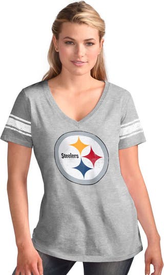 G-III 4HER BY CARL BANKS Women's G-III 4Her by Carl Banks  Heather Gray Pittsburgh Steelers First Pick Distressed V-Neck T-Shirt, Main, color, Heather Gray