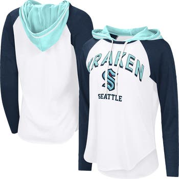 Add a touch of flair to your Seattle Kraken fandom with this G-III 4Her by Carl Banks VIP Raglan Long Sleeve Hoodie T-Shirt. This stylish top features contrast-color sleeves for a bold look that declares your Seattle Kraken fandom. Plus, the screen print team wordmark and logo at the chest leave no doubt who you'll be cheering for on game day.