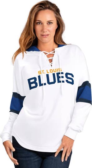 Women's G-III 4Her by Carl Banks White St. Louis Blues Goal Zone Long Sleeve Lace-Up Hoodie T-Shirt