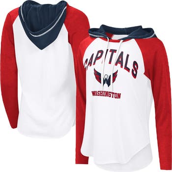 Add a touch of flair to your Washington Capitals fandom with this G-III 4Her by Carl Banks VIP Raglan Long Sleeve Hoodie T-Shirt. This stylish top features contrast-color sleeves for a bold look that declares your Washington Capitals fandom. Plus, the screen print team wordmark and logo at the chest leave no doubt who you'll be cheering for on game day.