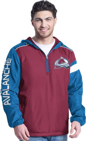 Brave windy, rainy or chilly weather without losing an ounce of your Colorado Avalanche pride in this Lateral Half-Zip Hoodie Jacket from G-III Sports by Carl Banks. Its design keys in on comfort and storage with mesh lining, a lightweight build, two front pockets and a zipper garage. An adjustable hood protects you from all conditions, while Colorado Avalanche colors and embroidered graphics keep you looking sharp at the same time.