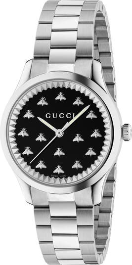 A sleek, brushed dial is swarmed by silvery bee indexes on this impeccably crafted Swiss watch that combines heritage motifs with a modern attitude.